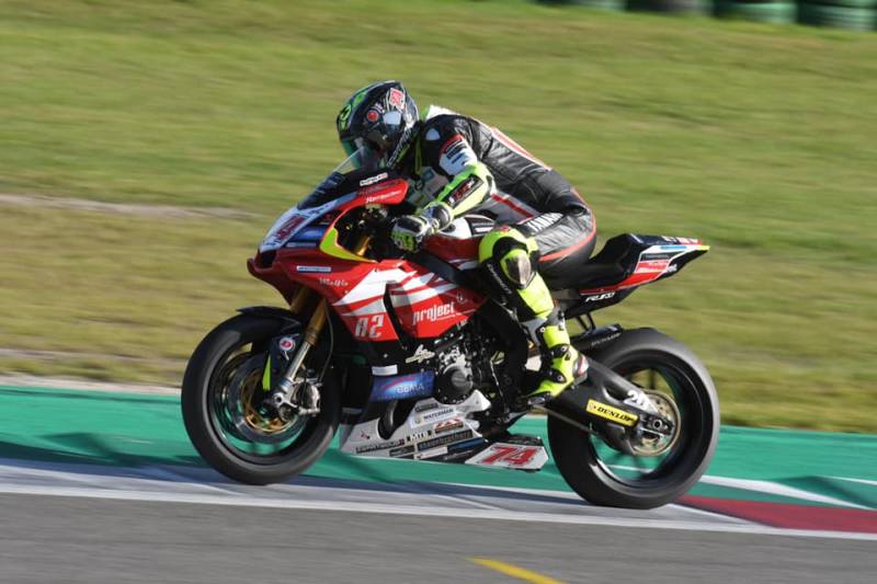 Dan de race, de start was prima kon direct aansluiten en mijn positie vasthouden, de eerste bochten verdedigend gereden en de positie behouden. Dit ging de eerste 4 ronden prima, strijd was fel en mooi, vooraan was het stuivertje wisselen en de groep bleef goed bij elkaar, na 4 ronden werd ik gepasseerd en viel ik terug naar de 7e plaats. Maar dat kon echt niet, direct in de navolgende ronde gepareerd en de 6e plaats weer opgeeist, echter liep de kop wel iets verder weg. Dit tot de 8e ronde vastgehouden waarbij een strijd ontstond tussen de plekken 1-3 en kort daarachter 4-7, in de 9e ronde moest het gebeuren, Ik wist dat ik achterstand op zou lopen lopen op de nummer 1 en 2 in het kampioenschap, maar de schade moest ik beperken. Alles op alles gezet en bij de haarbocht kon ik de nummer 5 passeren en direct aansluiten bij de nummer 4 aansluiting gehouden tot de ruskenhoek en richting stekkenwal kon ik hem aan de binnenzijde zetten en de 4e plek veroveren. Daarna volle bak door richting de kopgroep, de afstand was te groot maar op deze wijze kon ik wel de schade beperken. Bij het uitkomen van de ramshoek zag ik de kopgroep de GT induiken waarbij Fernandes die eerder in de ramshoek al een poging deed wederom de machine er tussen gooide, nu ging het alleen niet goed en ik zag hem onderuit gaan, zelf de GT verdedigend ingestuurd en ik kon richting de meet en richting het podium!!! Het hele team stond in de hekken en het was geweldig om weer het team een podium te kunnen bezorgen. Dit is het mooiste wat je terug kunt doen na alle inspanningen. Met deze 3e plek ben ik in het kampioenschap gestegen naar de 2e plaats op 20 punten van de nummer 1, met de nummer 3 op 11 punten achter mij, de nummer 4 op 23 punten en de nummer 5 op 28 punten. De nummer 1 is iets uitgelopen maar met 2 wedstrijden voor de boeg op 12 oktober is nog alles mogelijk en we blijven er in geloven. Nu eerst aankomend weekend de Benecup wedstrijden rijden tijdens de BSB en dan op naar 12 oktober.